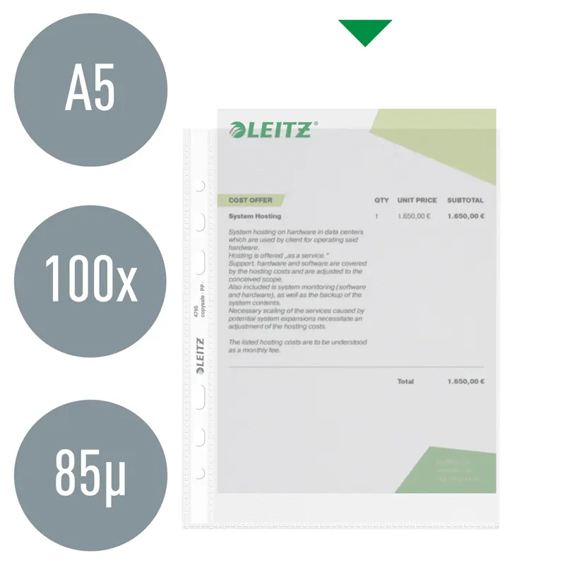 Leitz L479510 Poşet Dosya A5 Şeffaf Buzlu 50'li Paket x 40'lı Koli, belgelerinizi düzenli ve güvenli bir şekilde saklamanızı sağlayan kaliteli bir üründür.